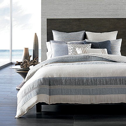 - Now and Zen: Natural materials and colors help create peaceful living spaces. To get the look, dress the bed with relaxed linen or a duvet with a soft, blurred floral pattern. Deep, rich indigo blues are also part of this trend direction and pair beautifully with pure white or neutrals. The blue and white combination will also be popular for table linens and dinnerware this season. Different shades of blue can be layered on the table for added interest.