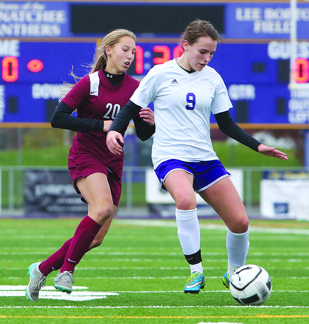 Abby Rathbun created Moses Lake’s first chance, dribbling deep down the left sideline before feeding a pass to Denali Knowles that was shot wide of the goal. Knowles had two more opportunities in the first half that just missed their mark.