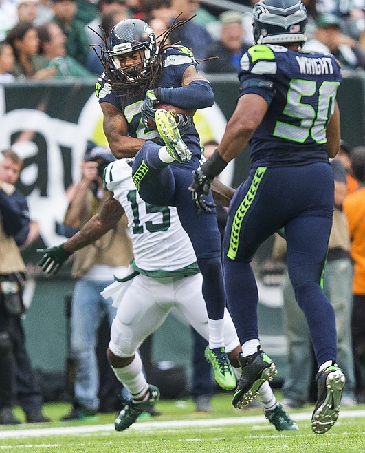 The Seahawks recovered in the fourth quarter. Atlanta was held to 24 total yards and Sherman had a hand — literally — in the key turnover when Matt Ryan’s pass slipped through Jones’ hands, was batted in the air by Sherman and was intercepted by Earl Thomas.