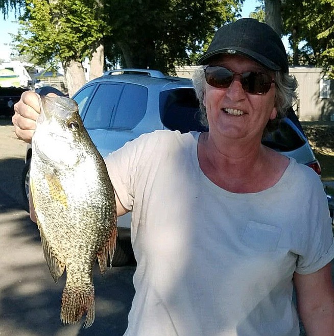 Annie Meseberg photo - Joni Nye of Monroe, WA caught this 16" crappie off the MarDon dock - biggest dock crappie so far this year.
