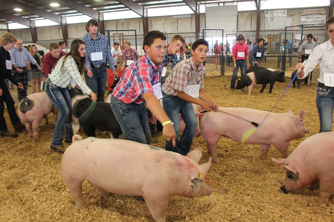 The situation had the potential to be a real pork traffic jam. Pigs in a traffic jam can get cranky, and cranky pigs fight. But despite the crush the show ring was quiet. “Even though there were 16 (pigs), there were no fights,” Andy Williams said. Williams was the judge and is an ag teacher and FFA advisor at Lind-Ritzville High School.