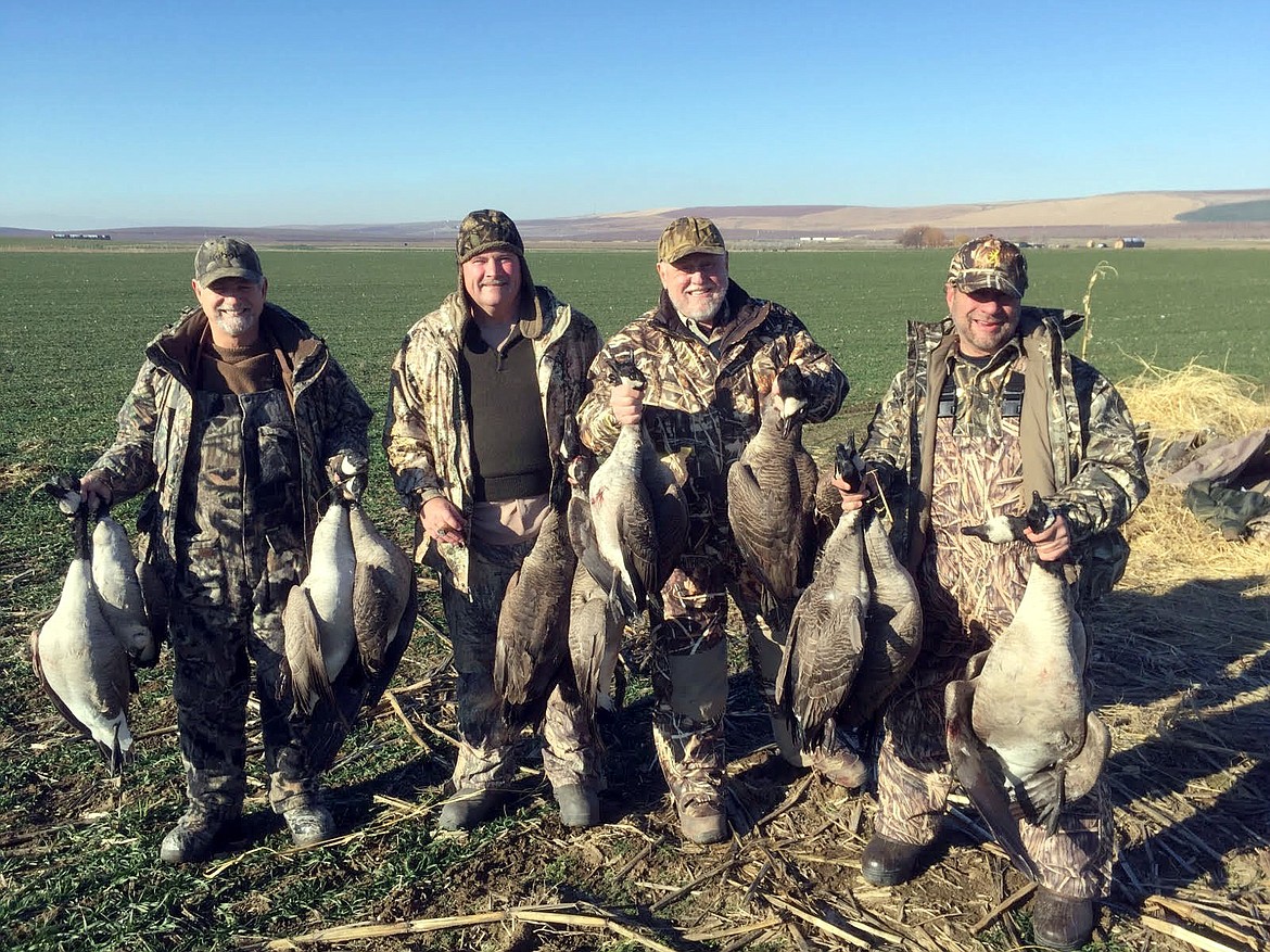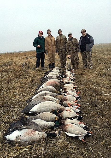 Pete Fisher photo - Bruce Kessler and party from Cheney with a limit of geese and a great bunch of mallards.