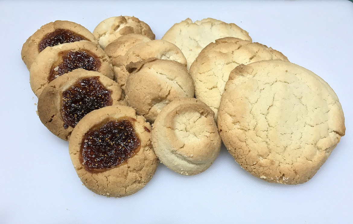 I did a lot of baking back in the days whe. we still made the cookies in store from scratch, not like today where a lot of them are pre-made in a factory somewhere and shipped in frozen clamshell containers ready to sell to the public. One of my favorites was the thumbprint. We’d make up the dough and take chunks of the dough, roll them into logs, cut into bite-sized pieces, place them on a sheet pan, and then stick a finger in each piece to place a depression in each. One big difference between this and making them commercially was that we used shortening, whereas butter is a much better flavored ingredient.