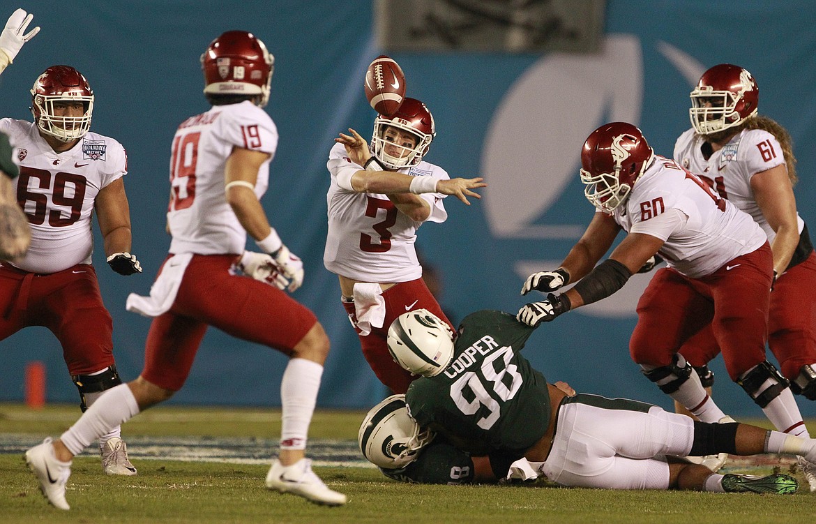 SAN DIEGO (AP) — Brian Lewerke threw for 213 yards and three touchdowns, and LJ Scott ran for 110 yards and two scores for No. 18 Michigan State, which took advantage of Luke Falk’s absence to rout No. 21 Washington State 42-17 in the Holiday Bowl on Thursday night.