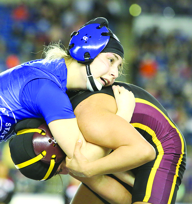 Kaylee Martinez (140) went into overtime against top-ranked Jasmine Pleasants of Thomas Jefferson tied 1-1. Pleasants scored the match-ending take-down with 3.2 seconds left.