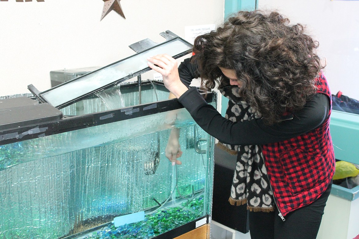 “They should hatch sometime early next week, Monday or Tuesday,” Killinger said as she struggled to anchor a bubbler on the bottom of the North Elementary School’s lobby fish tank.