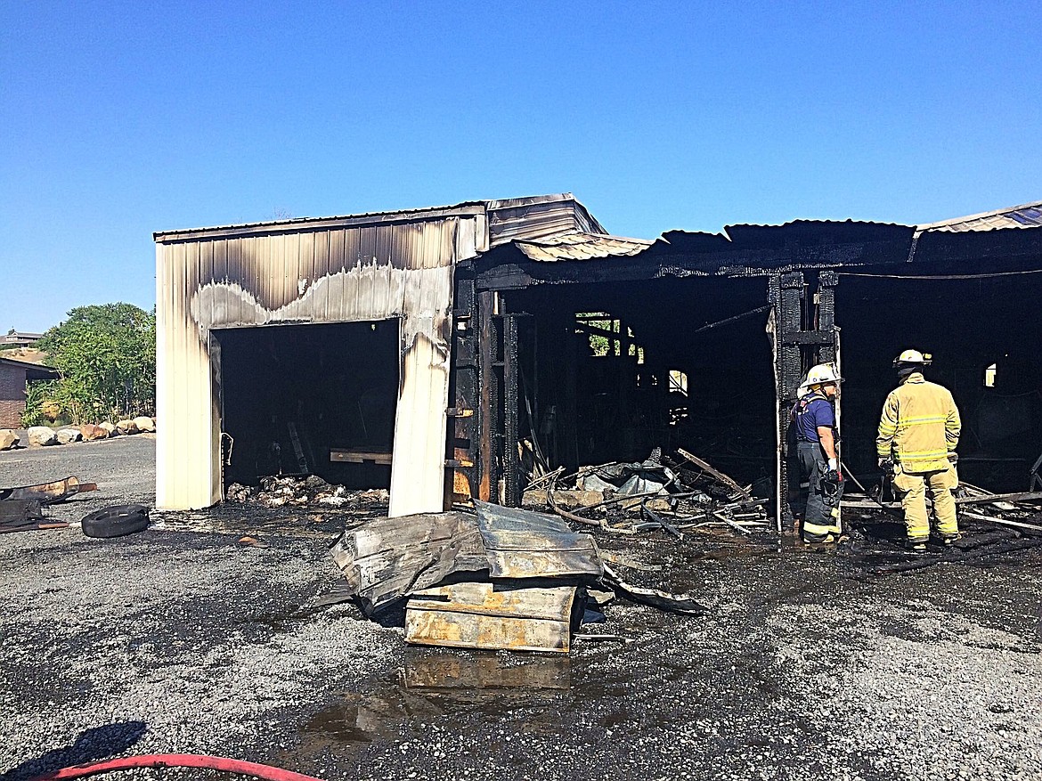 About 2:15 p.m. firefighters with Grant County Fire District No. 13 responded to a report of a structure fire in the 14000 block of Dodson Road Northwest. First responders at the scene discovered a shop had become fully engulfed in flames and was threatening a nearby home.