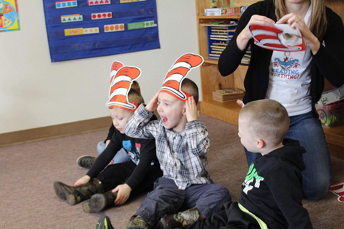 Instructor Ali Roseburg explained. “He wrote books for kids like you.” The teachers had been reading Dr. Seuss books to the kids all week, including “Cat in the Hat.” Dr. Seuss wrote that.