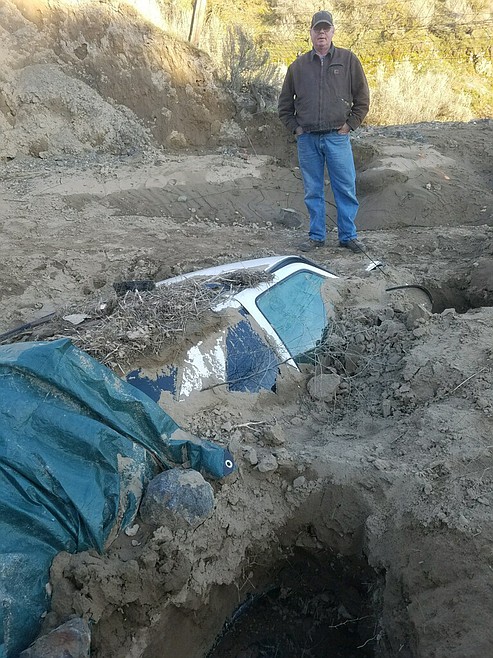 He rescued what was left of his vehicle – somebody apparently tried but failed to steal the tires – a few days later. The mud covered the entire car, and it took about three hours to dig down to it.