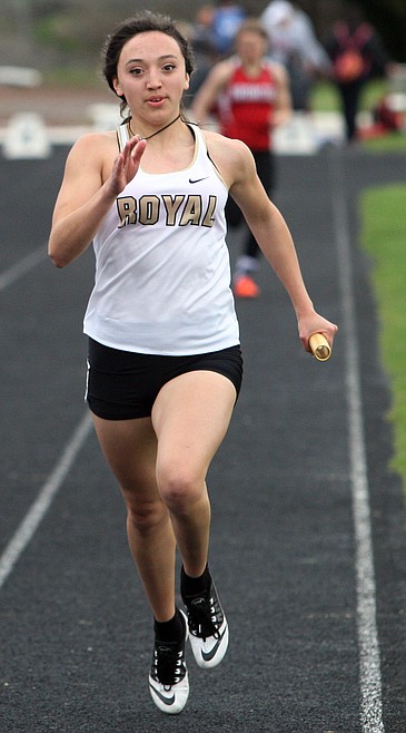 QUINCY — Royal's Maggie Delay won both the 100-meter hurdles (15.73 seconds) and the triple jump (34 feet, 7.5 inches) to lead the Knights to a second-place finish in the 17-team, predominantly 2A girls meet on Saturday at the Quincy Invitational.