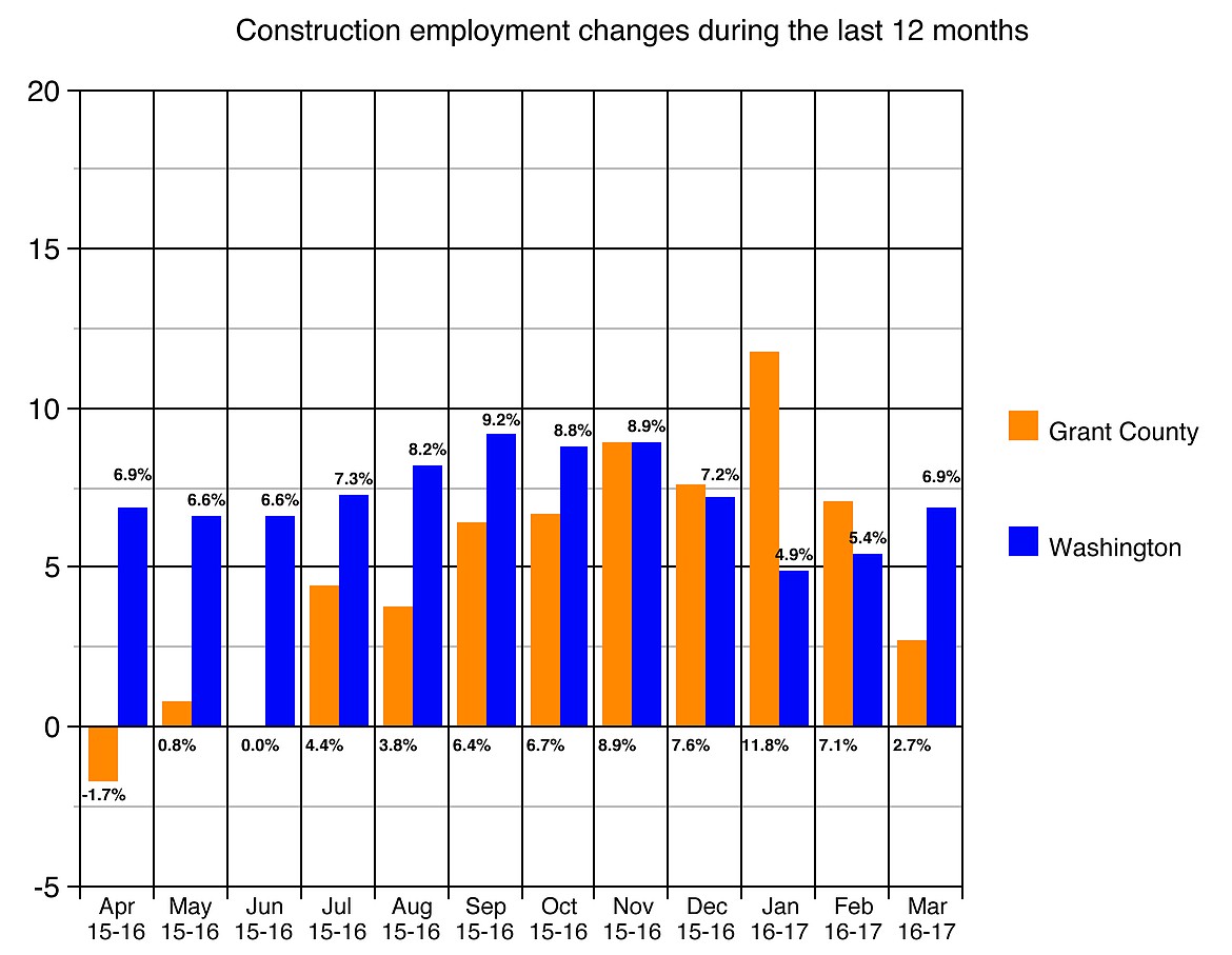 “This March, Grant County employers provided 28,520 jobs, a 130-job increase from the 28,390 recorded in March 2016.” That was much lower than the statewide average, he said.
