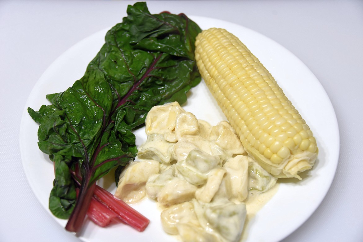 Tortellini is available in both fresh and dried varieties along with a variety of fillings. My recent purchase of a fresh package included a three-cheese blend. The package contained 20 ounces of product, which was a bit too much for a meal, so I set aside the unneeded amount and placed it in a zip-top bag in the freezer, in case I wasn't able to get back to it in a timely manner. I followed the directions for cooking it, but to save on dirty dishes, I steamed by chard on top of the cooking tortellini. I like to freshly shred my cheese, versus buying pre-shredded, as sometimes companies add a little extra something to the cheese to keep it from sticking together. No thanks. For small amounts to shred, I'll just grab the box shredding device and use some elbow grease. For larger amounts, I'll grab the food processor, which has a handy shredding blade, which makes quick work of any shredding task.