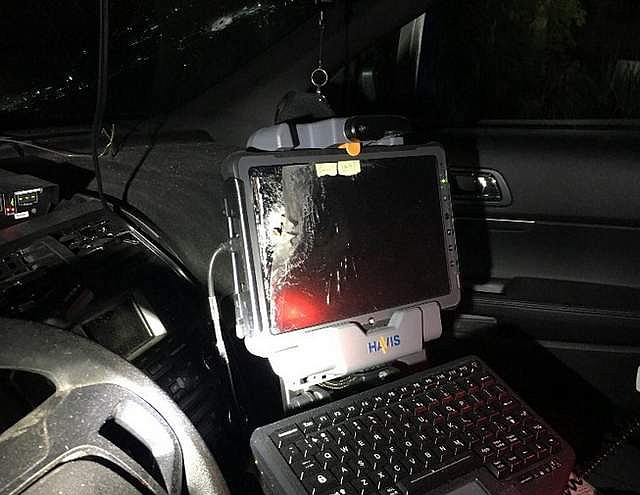 Multiple shots were fired by the suspects, which reportedly hit the front end and windshield of the trooper’s patrol car. The trooper’s in-car computer was reportedly damaged, but Trooper Nate Dawson was not injured.
