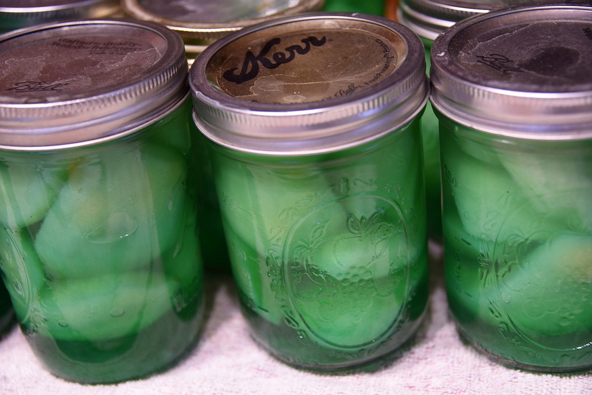 Hot pack – In a large pot, heat together 6 1/2 cups of water with 3/4 cup of sugar, along with a few drops of mint oil and green food coloring. Heat fruit in hot syrup for 10 minutes. Pack hot pears in pint jars and cover with boiling syrup, leaving 1/2 inch headspace. Remove air bubbles by running a plastic spatula or blunt knife between the jar and the fruit. Wipe rims and adjust lids. Process pints for 25 minutes in a boiling water canner in most areas of the Basin. After processing, take canner off heat. Remove lid and wait 5 minutes before removing jars.