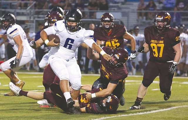 Rodney Fuchs and Dominic Signorelli combined on the ground to work Moses Lake inside Hanford’s five-yard line mid-way through the second quarter. Fuchs eventually barreled into the end zone for a three-yard touchdown to give Moses Lake the lead for good.