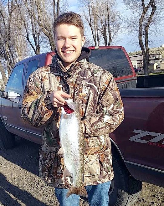 Pete Fisher photo - Michael Morrow with a nice Rainbow trout caught off the shore at MarDon Resort.
