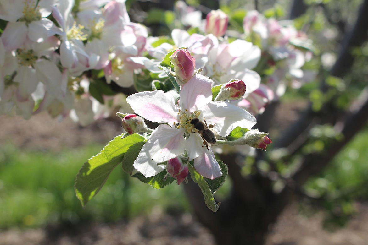 A week of warm temperatures prompted a lot of plants to start blooming – as allergy sufferers can attest – including apple trees. The warm sunny days and light winds also are to the liking of bees, and they had things to do.