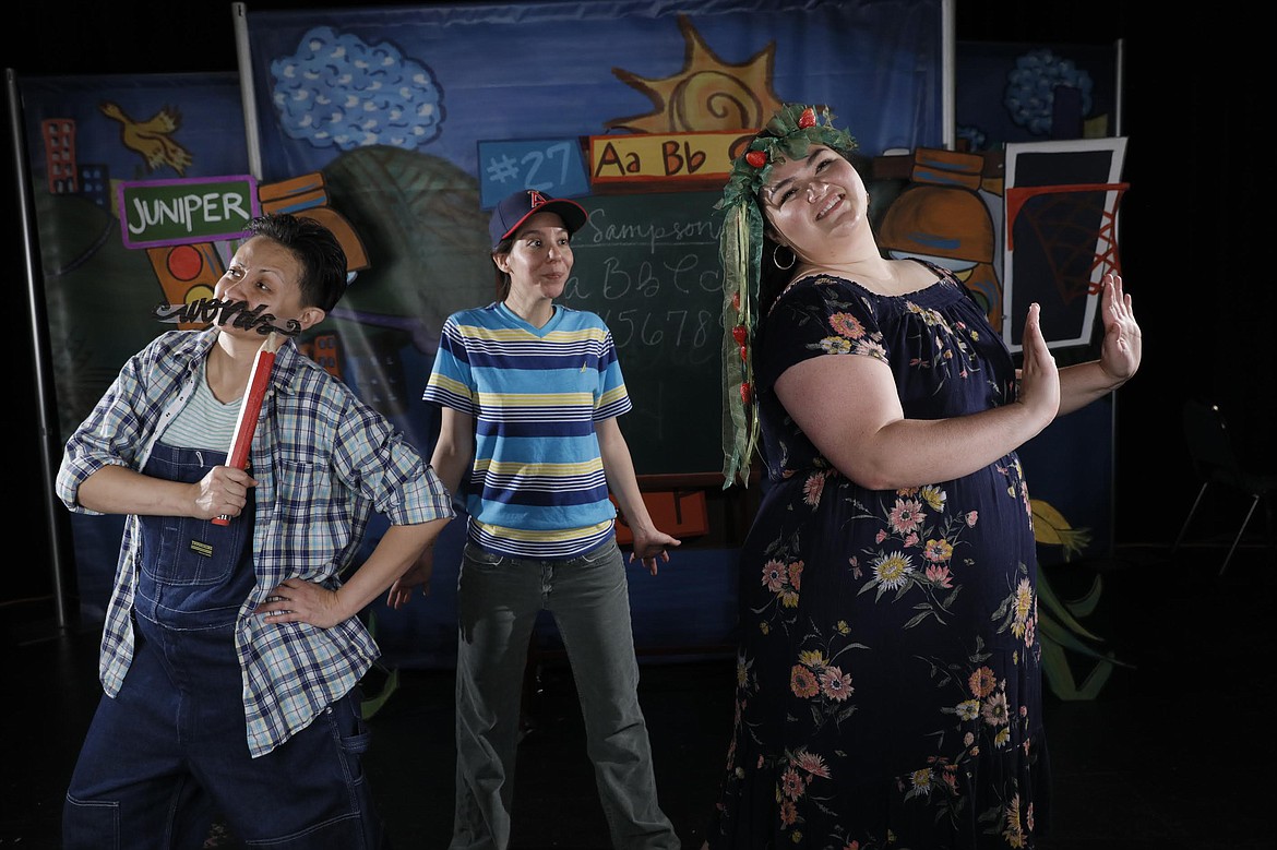 The Book-It Theater is a Seattle-based company that has become a familiar sight in north central Washington libraries, performing frequently throughout the NCRL system. Dramatizations based on books are part of the company’s repertoire. The traveling troupe focuses on works for children; the company also performs adapted and original works for adults at its Seattle theater. The traveling troupe takes a minimalist approach – actors change costume while the action is going on, and props are in boxes that double as scenery when necessary.