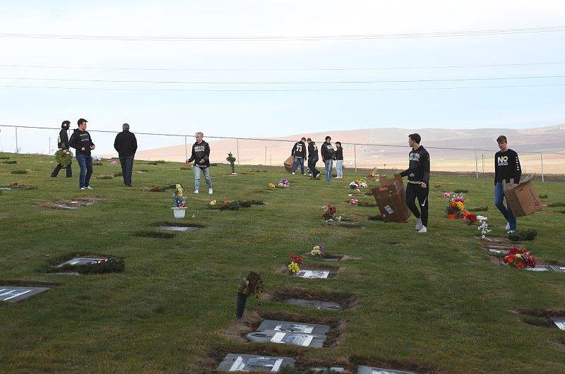 ROYAL CITY — On a cold Thursday morning, as other high schoolers were in classes and preparing for a holiday break that couldn’t come fast enough, 10 members of the Royal High School football team were laying evergreen wreaths on the graves of many of the town’s deceased veterans.