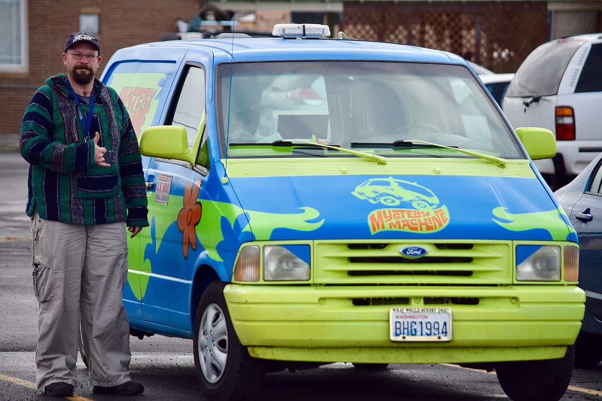 And stand out it does, this bright 1997 Ford Aerostar van, looking for all the world like Fred, Daphne, Velma, Shaggy and even Scooby — Arnold has a Scooby head he sometimes wears — are going to tumble out of the van and foil some villain’s attempt to haunt for fun or profit.