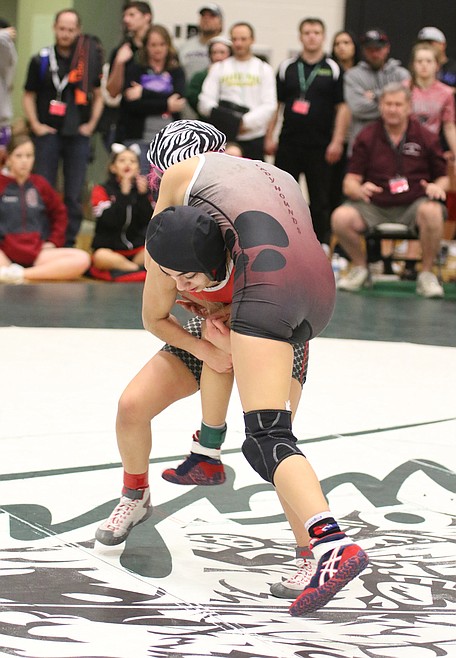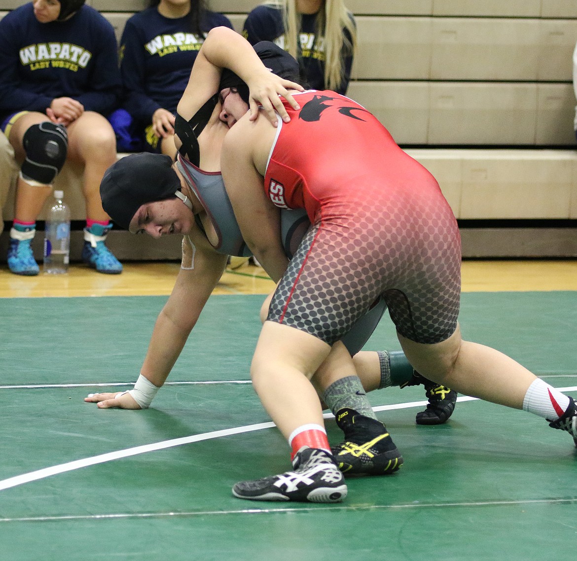 Giles and Mendoza claimed titles in their weight class, but both had to come from behind to do it. Each trailing 5-0 was able to turn the tide on their opponents in the blink of an eye and win by fall. Giles took down Wapato’s Estrella Pulgarin; Mendoza beat Jacqueline Luna from Toppenish.