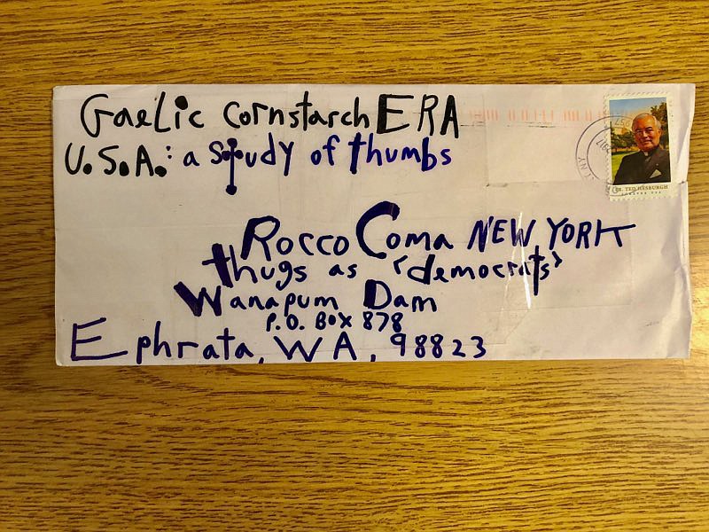 PUD spokesman Ryan Holterhoff said the letter was mailed to the PUD’s offices in Ephrata and the cryptic statement on the envelope, one of which references the Wanapum Dam, gave PUD officials cause for concern.