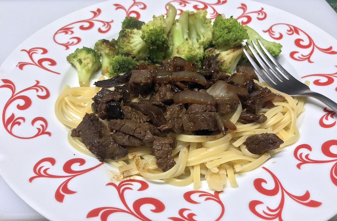 I’ll usually stir-fry when I am looking for lighter fare, setting aside those dishes calling for butter and cream. Noodles run the gamut from ramen to the pictured linguini. Meat can be chicken or beef, but usually whatever pops out of the freezer when I am looking around for something. In this case it was a roast of about 2 pounds.