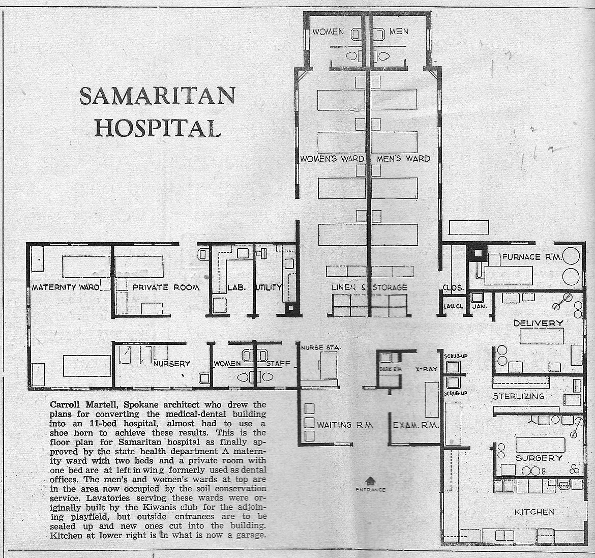 OK, the facts are a bit sketchy from this article, but it was a beginning. The main photo this week is a blueprint of what was, apparently, the beginning of Samaritan Hospital. No where in the article does it indicate the address, but it must be what we called the old barracks from the Moses Lake Army Air Base, which was converted into a hospital.