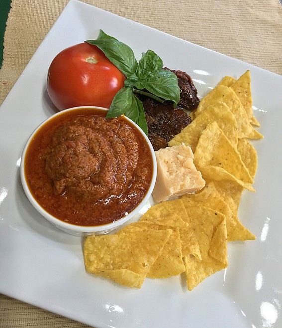 Pesto can be eaten fresh or used as an ingredient in another dish. If fresh, it goes well with crackers, corn chips, a baguette. In fact, after taking the above photo, the pesto was quickly devoured as dinner.