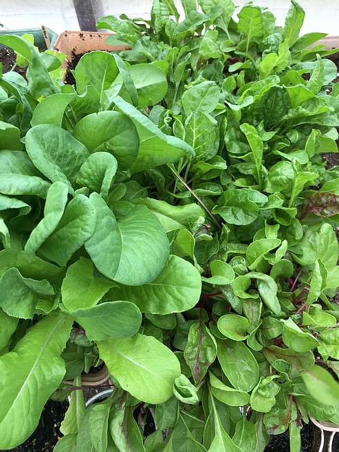 Our lettuce grown outside is not high heat-tolerant and will tend to go to seed and the leaves turn bitter in extended hot temperatures. The chard is a much hardier plant and will tolerate the higher temperatures, giving us some sort of lettuce in the summer.