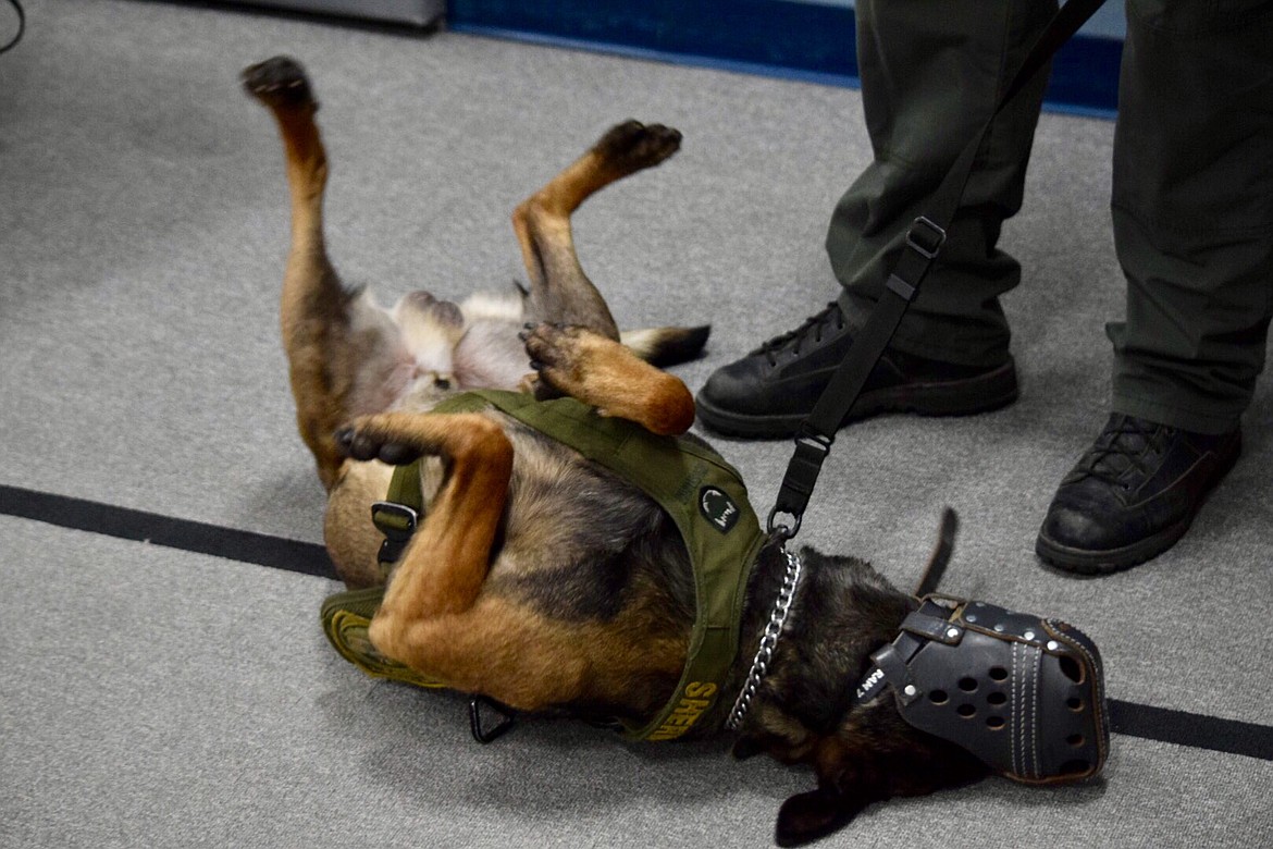According to Voss, Char and K-9 Chicka helped kids cleanup broken glass and needles while Voss told kids all about his dog Edo as part of an emergency response to an nearby brushfire last year.