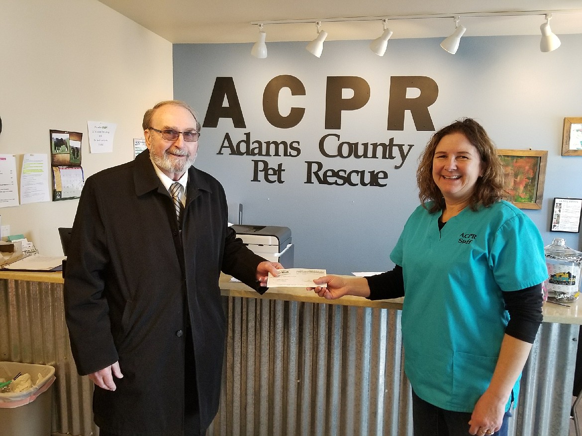 Adams County Commissioner Roger Hartwig presented a check for $25,000 on Wednesday, Feb. 14 to Adams County Pet Rescue Director Kyya Grant. The five-figure donation is a token of the county’s continued support for the tireless efforts conducted by staff at the facility.
