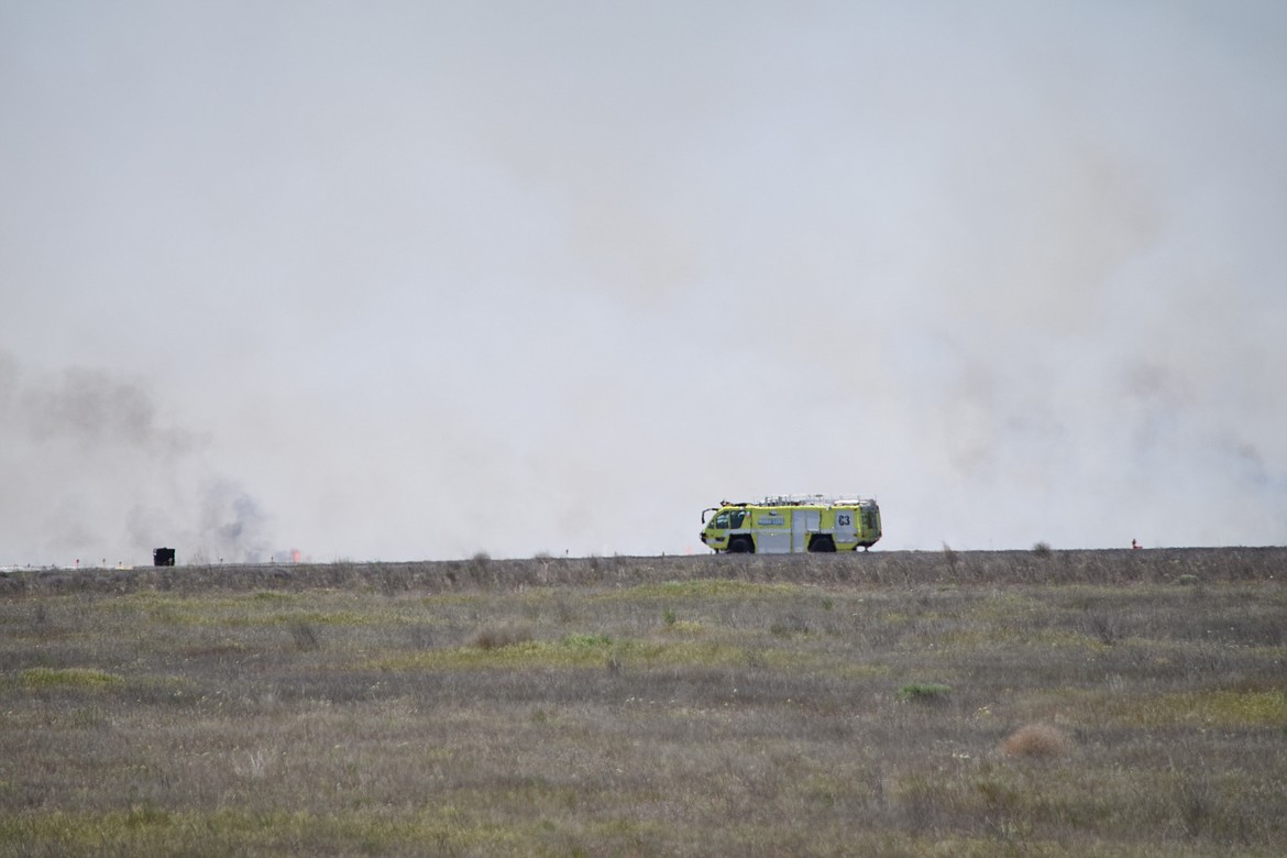 Because the shape of airport’s runways and their concrete construction enclose a fair amount of scrubland, Mueller said fires can frequently be set and “herded” so they will put themselves out.