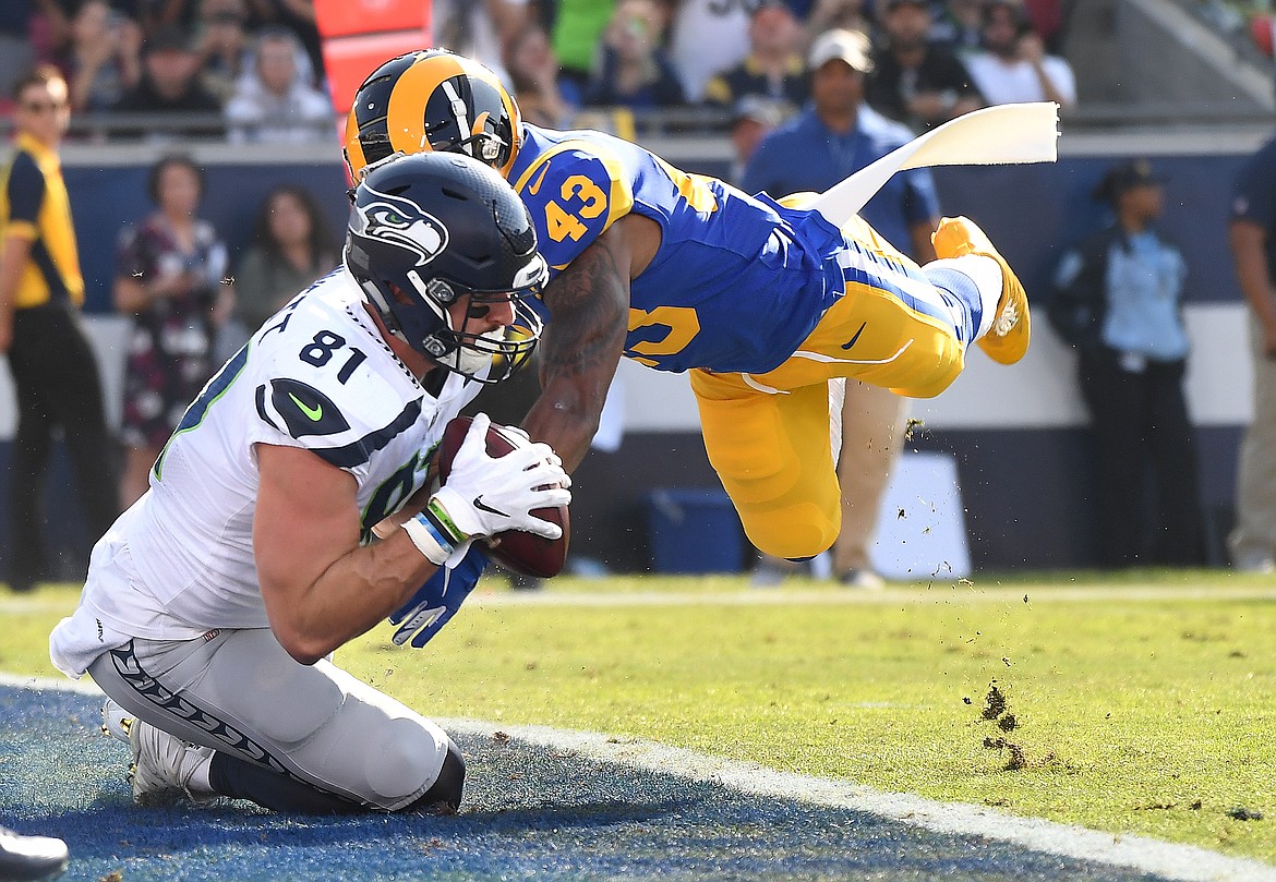Seattle tried an onside kick after Sebastian Janikowski’s field goal with 9:52 to play, but LA’s Josh Reynolds snatched it. Greg Zuerlein kicked his third field goal for the Rams.