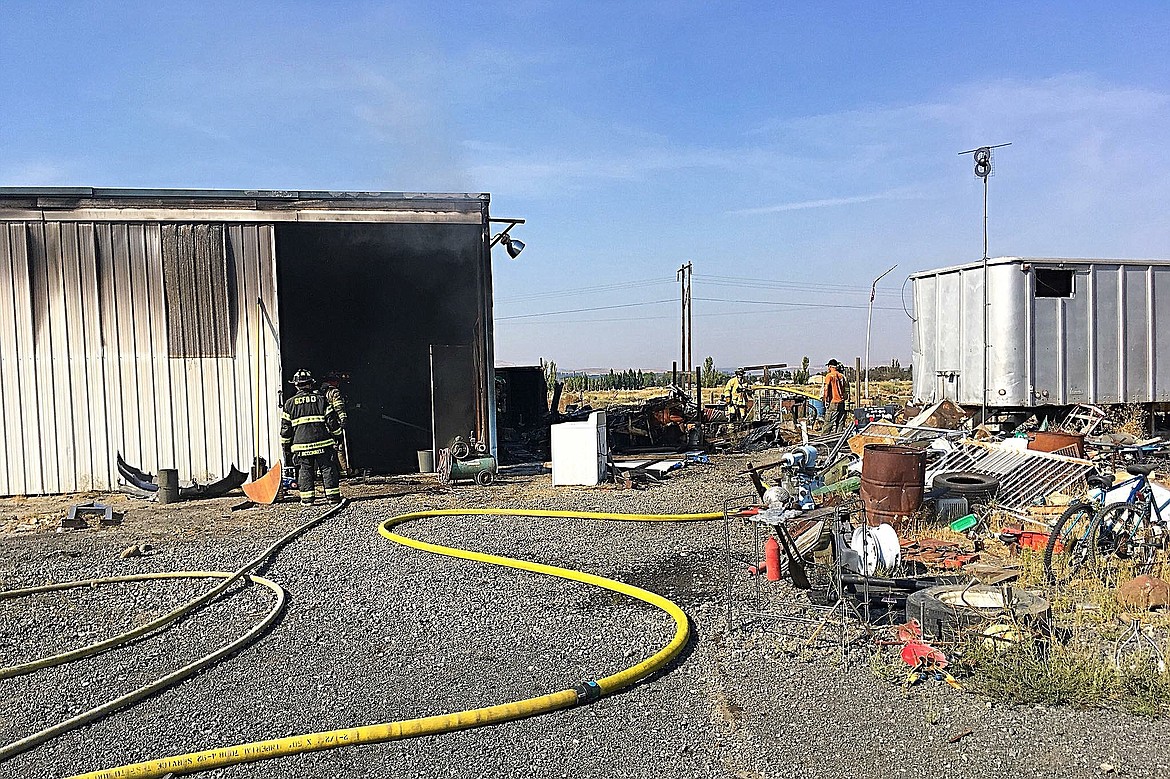 EPHRATA — A travel trailer was destroyed and a nearby shop was heavily damaged by fire Tuesday afternoon near Ephrata.