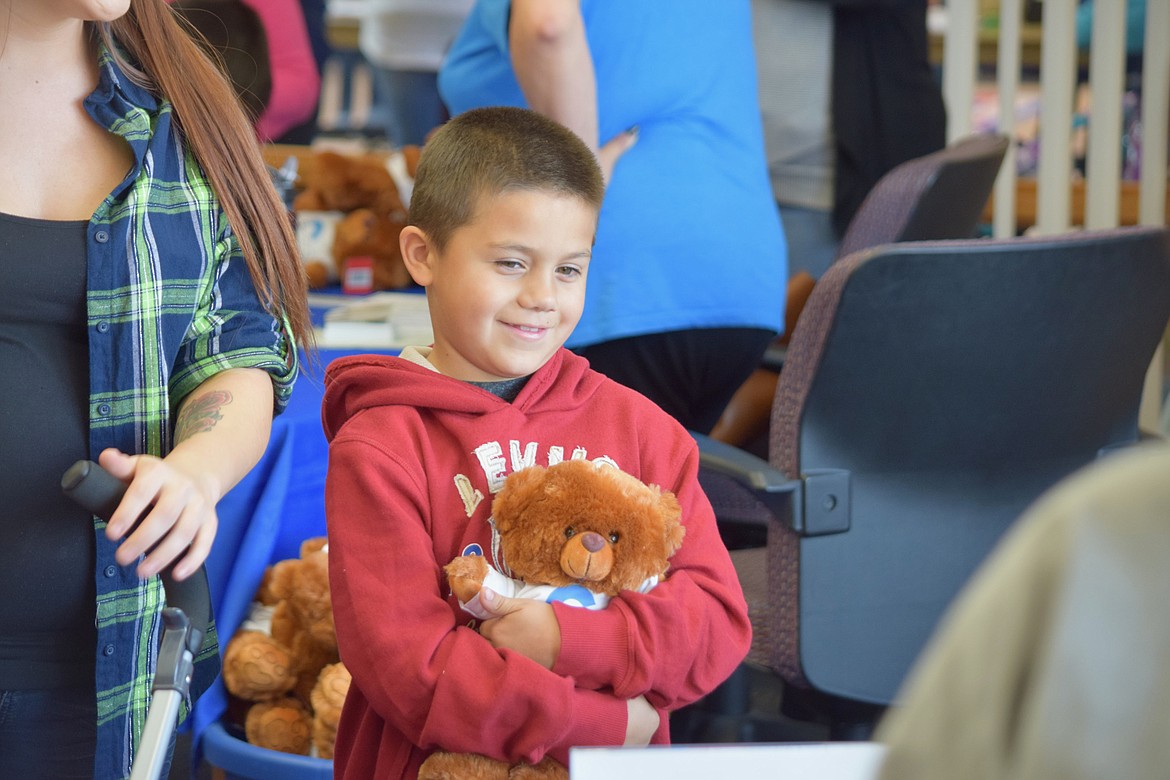 “I have one of those!” said a little girl as she clutched a brand-new teddy bear with a bandaged leg.