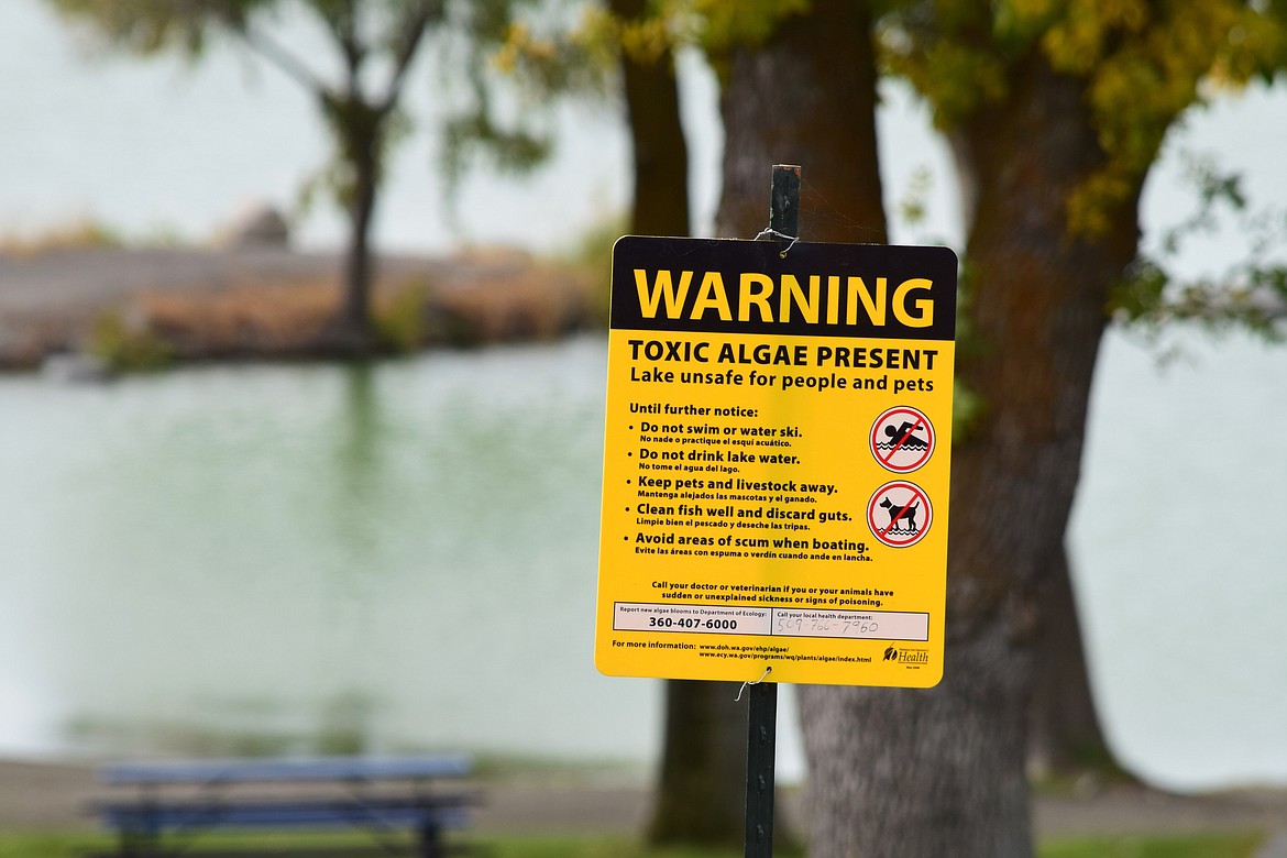 After taking samples from Potholes this week, the health district found elevated levels of microcystin, a toxin produced by certain kinds of blue-green algae, above Washington state guidelines, forcing the district to post signs around the reservoir warning people to avoid contact with the water.