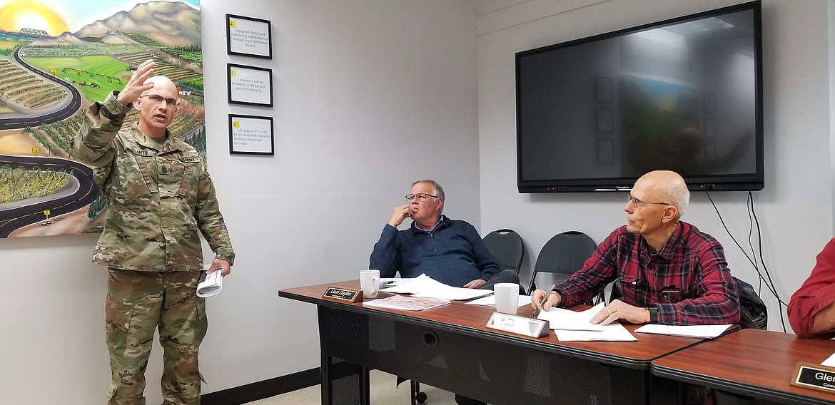 Army Command Sergeant Major Paul P. DeSanto, of the Yakima Training Center, talked to the Port of Mattawa commissioners during a regular meeting on Monday, Dec. 9. Currently, the Army has a boat launch on its property on the west side of the Columbia River. It also has two boat launches on the east side of the river that haven’t been used for approximately 20 years.