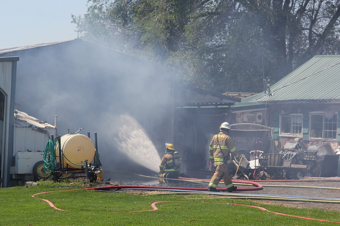 Every vehicle in the Grant County Fire District No. 5 fleet was deployed to the scene to fight the blaze, fire officials said. The fire ripped through the shop and did minor damage to an adjoining home, but no one was injured, said Fire Marshal Bruce Gribble, who spoke with the elderly owners of the home.
