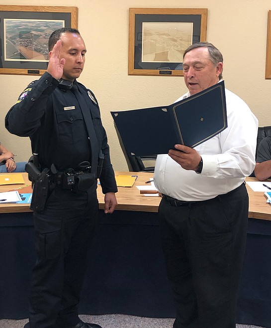 ROYAL CITY — Royal City Mayor Kent Andersen swore in a new police officer Tuesday, May 7 during a regular city council meeting. Yered Farias-Ramos finished the state police academy on April 17 and has been working on the streets since. The swearing-in brings Royal City’s police force up to three officers.