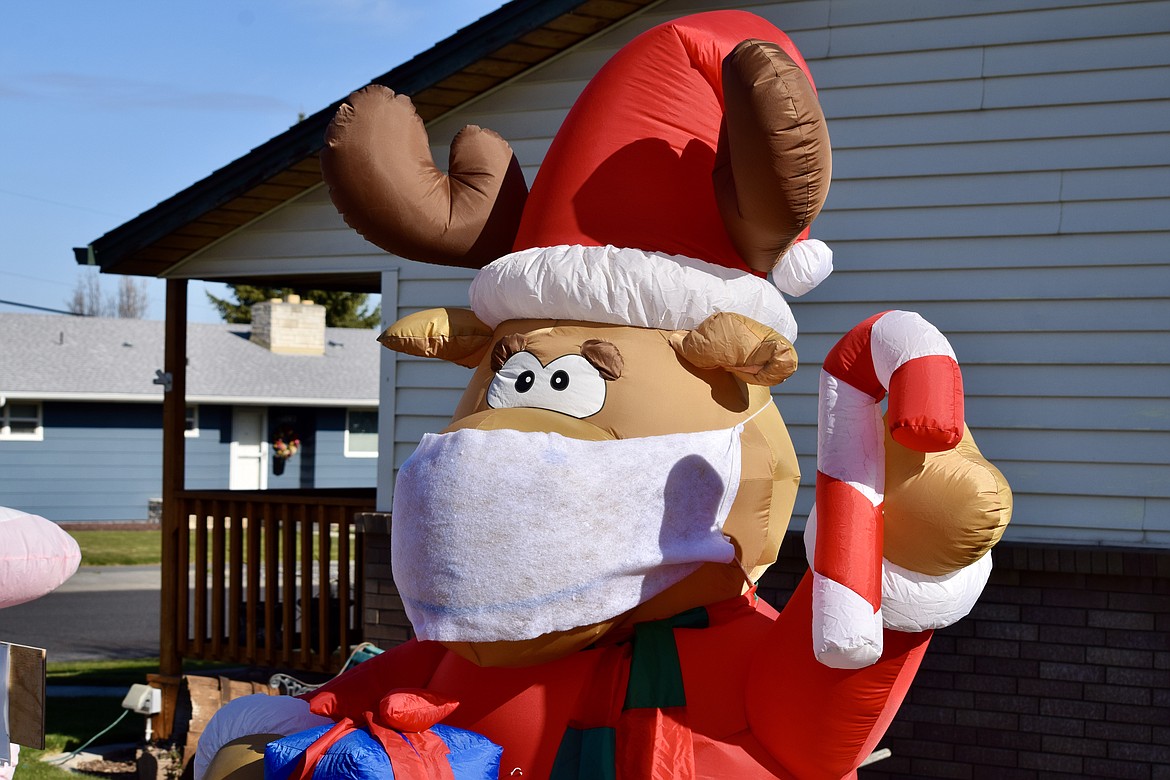 Coulter and his wife Cheryl put up the small display of inflatable characters representing significant holidays — an inflatable American flag, a Valentine’s Day bear, a leprechaun, a scarecrow, an Easter Bunny holding an egg, and a moose dressed as Santa Claus — two weeks ago to help lighten the city’s mood.