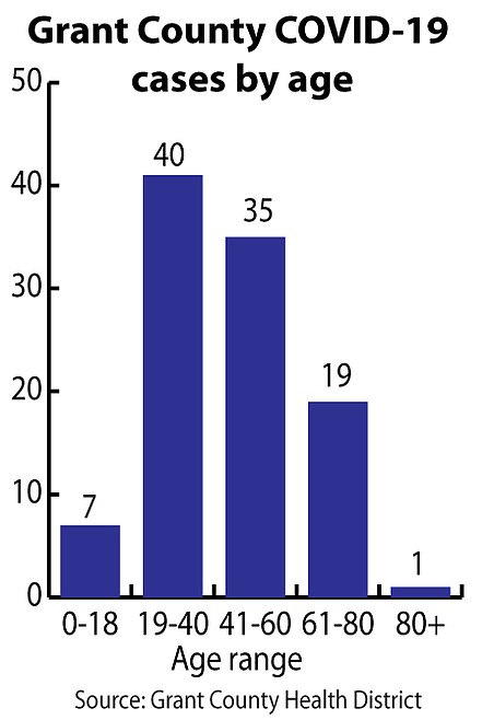 GRANT COUNTY - There are 101 confirmed cases of the novel coronavirus in Grant County as of Thursday evening, with two new cases reported in Moses Lake and one each in the Quincy and Mattawa areas, according to the Grant County Health District.