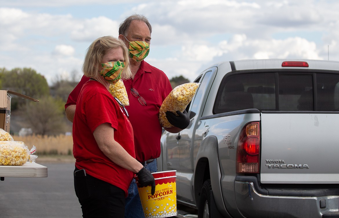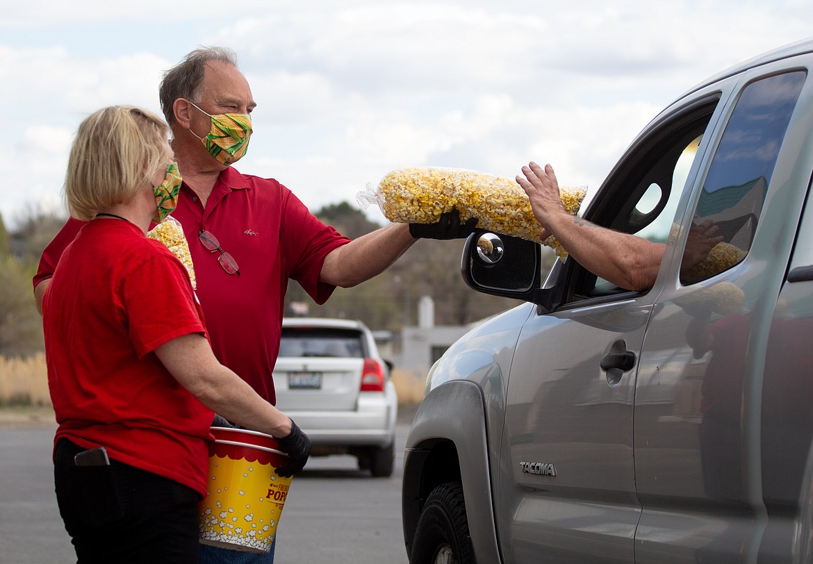 Gale said it wasn’t long after the movie theaters closed their doors that they began receiving inquiries from community members, including some in Moses Lake, about what would be done with the extra popcorn kernels. Knowing people would be interested, Gale said they realized they’d be able to get through all of their product in stock much quicker by giving it away.
