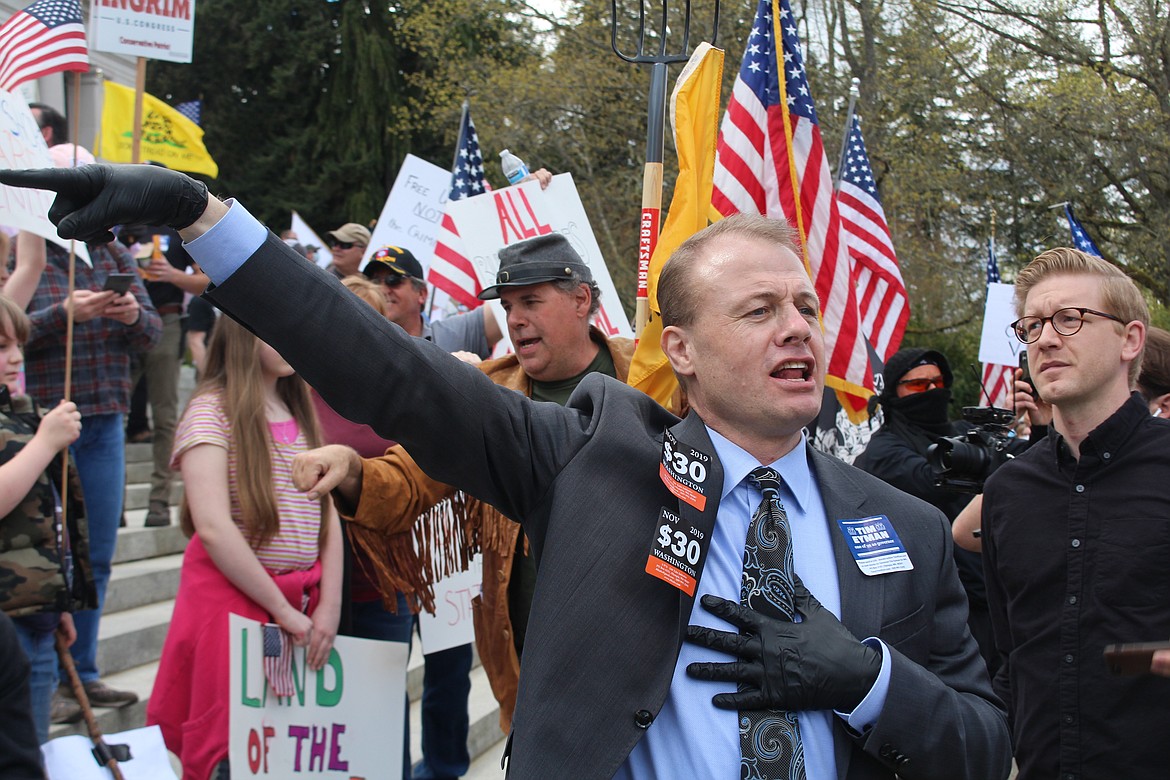 Tim Eyman, tax activist and gubernatorial candidate, helped organize the protest. Eyman said Inslee’s order was an overreach and said he favored the approach the governor of South Dakota took, which allowed individuals to make their own choices about how to be safe.