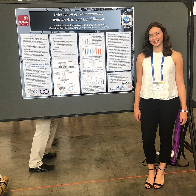 The COVID-19 outbreak pushed the 11th annual Iona College Scholars Day online; Skinner, a two-time participant prior, didn’t miss a beat and virtually presented her research on the effect of graphene oxide on cellular membranes.