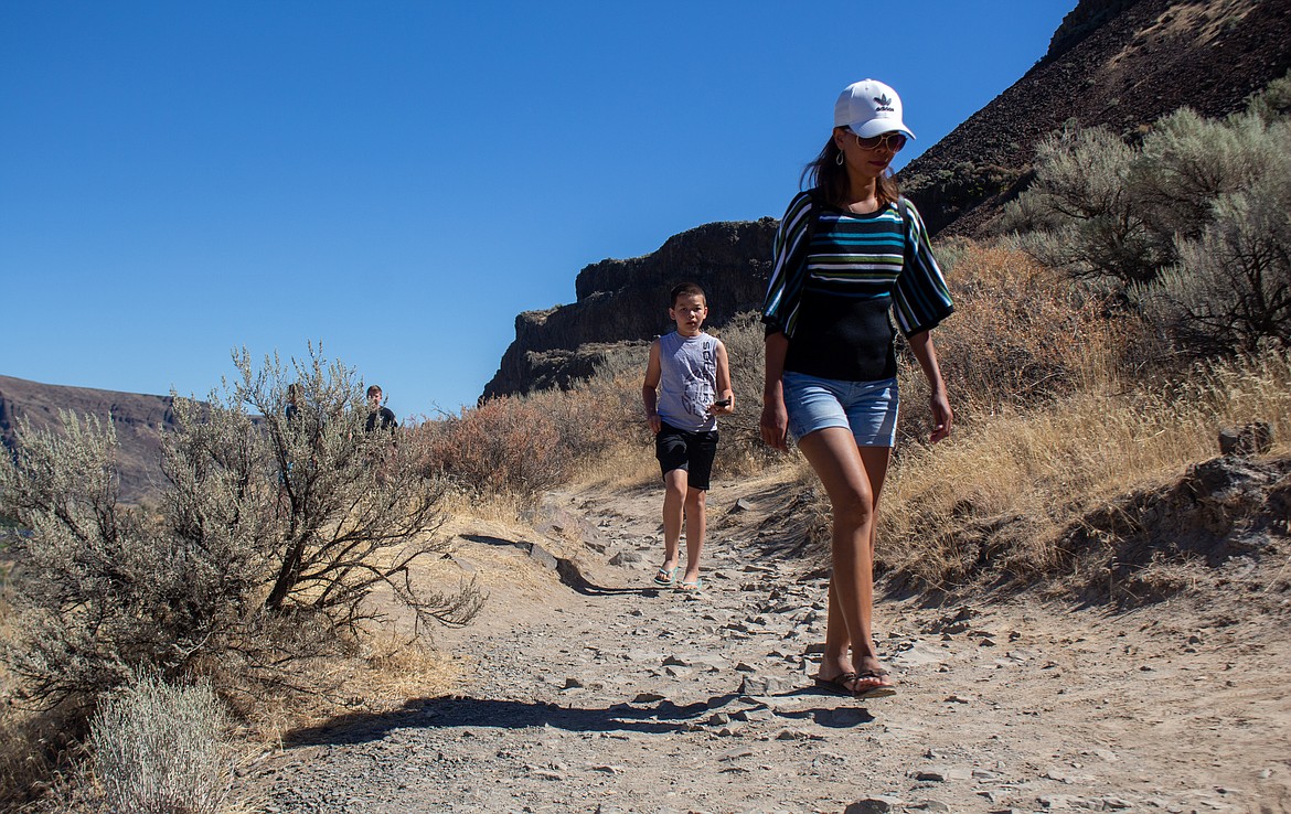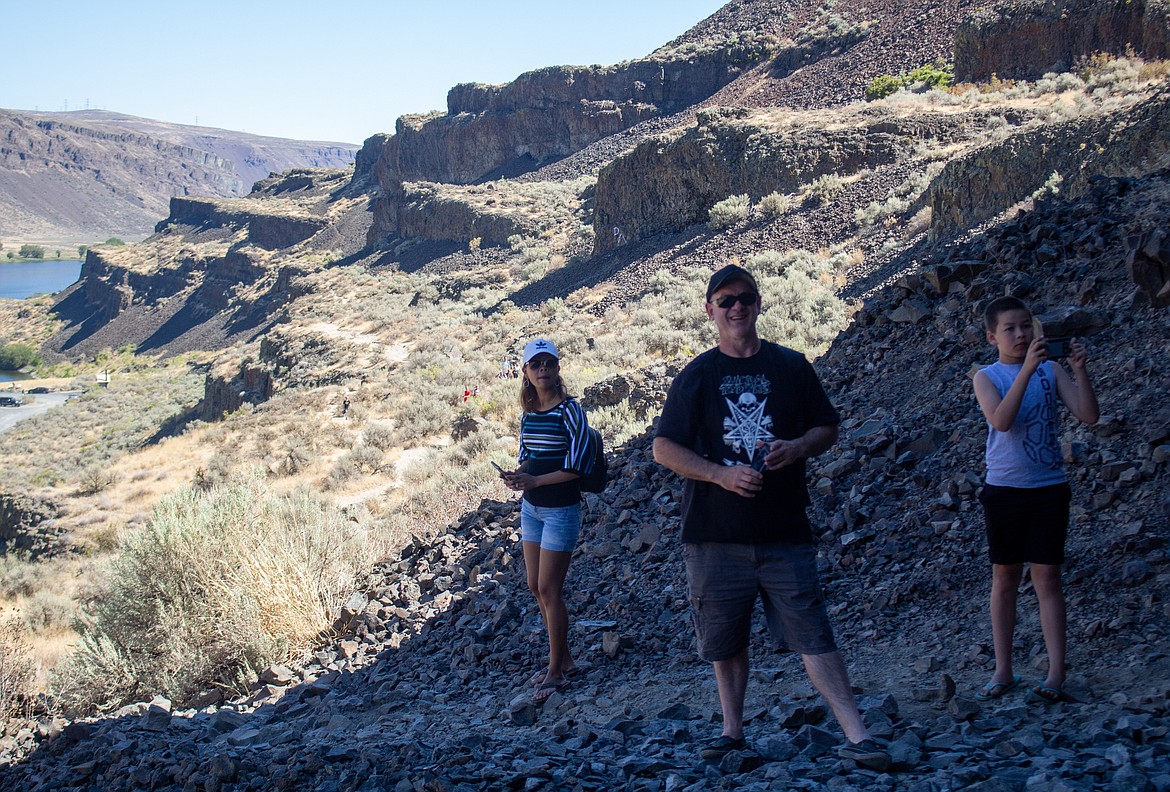 Chris Carrato and his family came over from Everett to visit their vacation home on Blue Lake on the weekend. Out hiking the trails near Lake Lenore Caves on Aug. 9, Carrato said they’re doing anything they can to escape from the west side for a little while.