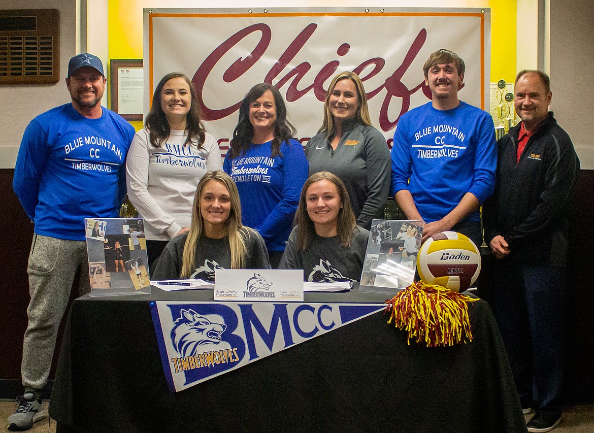 MOSES LAKE — Moses Lake seniors Serina and Ashlyn Haneberg committed to Blue Mountain Community College to play volleyball on Tuesday afternoon surrounded by friends, family and coaches.