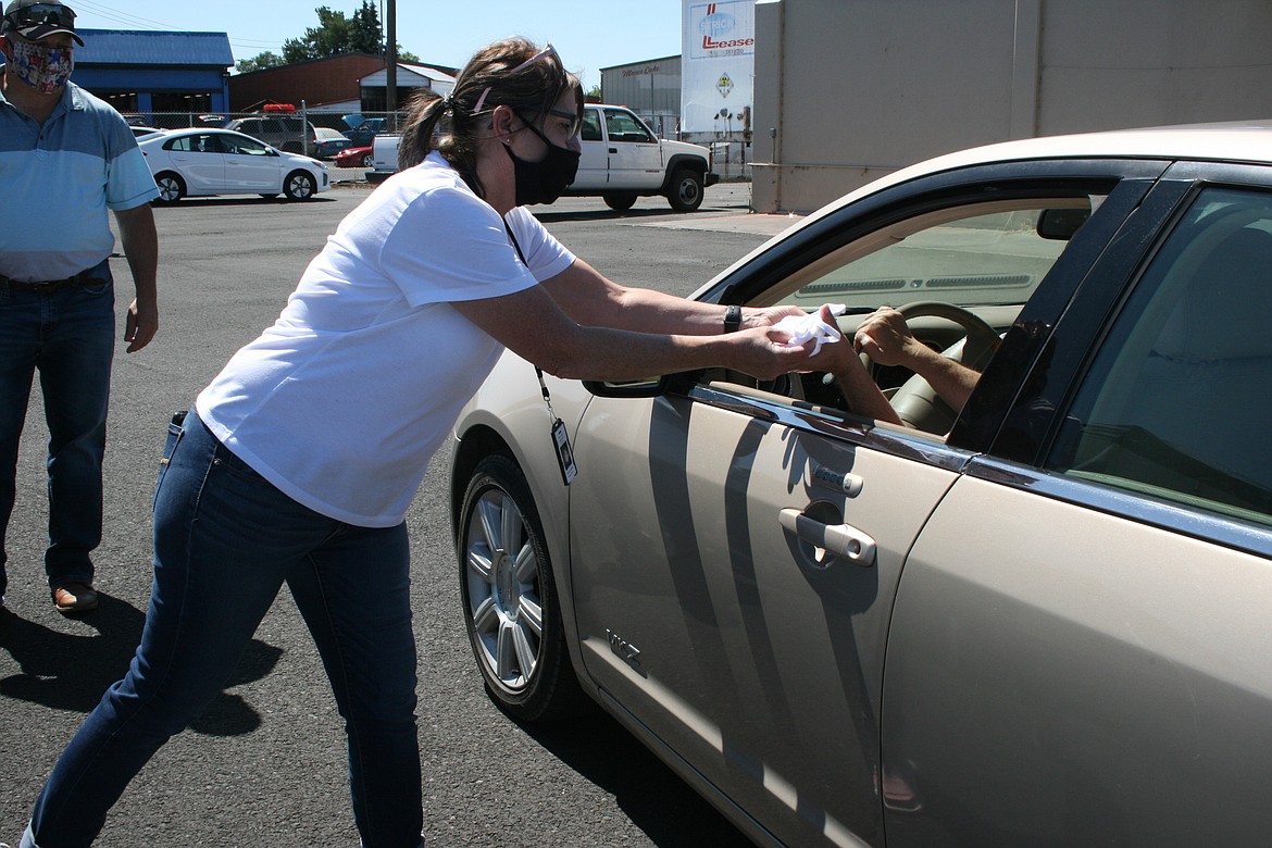 Volunteers from First Choice Employment Services and Columbia Basin Elks were joined by members of the Moses Lake-Othello Association of Realtors to hand out the masks. Jennifer Killian, one of the organizers, said they had 10,000 masks to give away.
