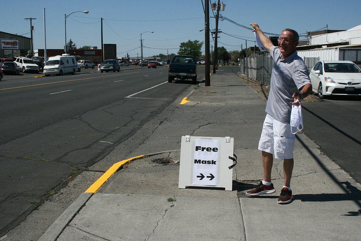 Killian is a member of the Columbia Basin Elks and recruited fellow club members to help hand out masks. She also asked the Realtors association for some additional help. Past president Doug Robins said the Realtors were happy to join in.