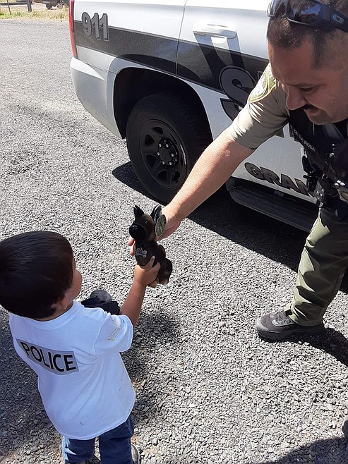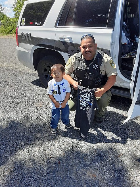 SOAP LAKE — Five-year-old Olekzander Lopez’s face lit up on Sunday as law enforcement from the Soap Lake Police Department and Grant County Sheriff’s Office came by to surprise him on his birthday at home. Soap Lake Officer Trevor Jones Grant County Sheriff’s Office deputies David De La Rosa and Jason McDonnell joined others who drove by on Sunday in Soap Lake. Olekzander’s mother, Emma Lopez, said they wanted to do something special for him with the drive-by party since they aren’t able to go anywhere due to the pandemic.